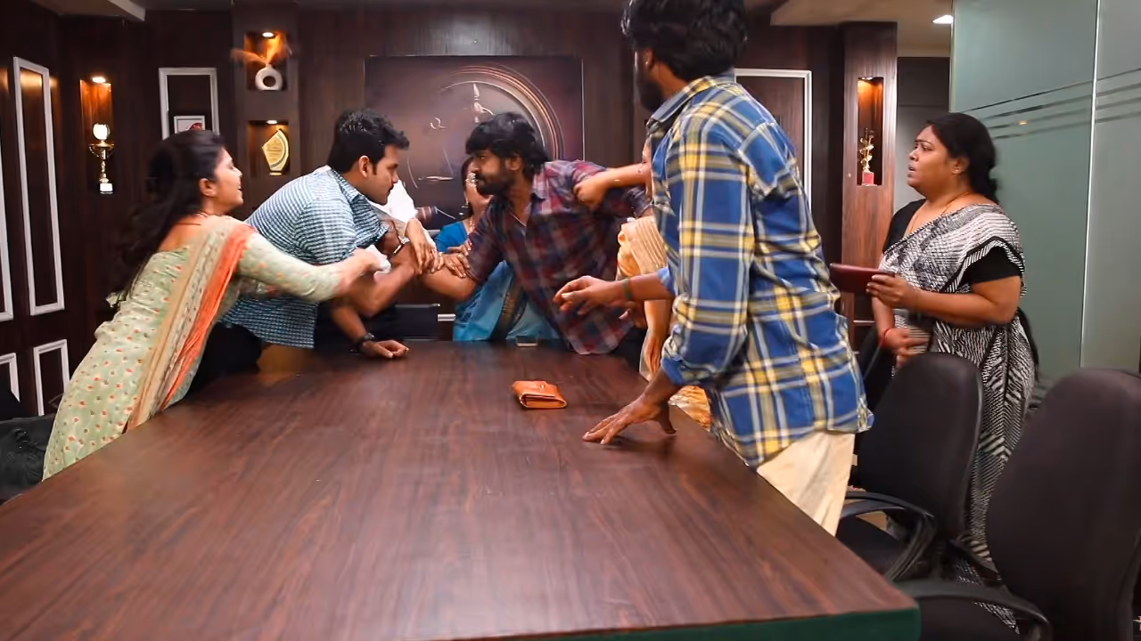 செல்வம் தன்னால் ஒரு லட்சம் தான் தர முடியும் என கூறி இருந்த நிலையில், அதற்கெல்லாம் ஒத்துக் கொள்ளாத அருண், பேசாம நான் உன் அப்பா மேல கார் ஏத்தி கொன்னுட்டு உனக்கு காசு கொடுத்த ஒத்துப்பியா என முத்துவை பார்த்து கேட்க, அதனால் கடுப்பாகும் முத்து, அருணின் சட்டையை பிடித்து அடிக்க பாய்கிறார். அவர்களை அங்கிருந்தவர்கள் பிரித்துவிடுகிறார்கள். பின்னர் அருண் தனக்கு 25 லட்சம் வேண்டும் என கேட்கிறார். அதன்பின்னர் வக்கீல் பேசியதை அடுத்து சரி, 15 லட்சம் கொடுக்க சொல்லுங்க என சொல்கிறார். இதையடுத்து முத்து டிரைவர்கள் படும் கஷ்டத்தை எடுத்து சொன்ன பின்னர் 5 லட்சம் தருமாறு கூறுகிறார். இதற்கு 1 மாதம் டைம் கொடுத்திருக்கிறார் அருண். முத்துவும், செல்வத்திடம் பேசி ஒரு மாதத்தில் 5 லட்சத்தை கொடுப்பதாக உத்தரவாதம் கொடுத்திருக்கிறார்.
