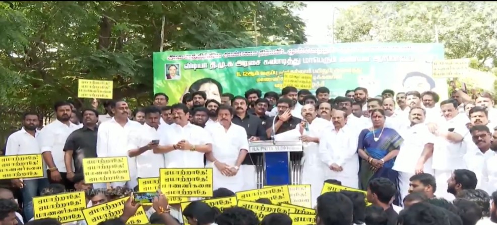 பாரபட்சம் இன்றி 11, 12 ஆம் வகுப்பு மாணவர்களுக்கு மடிக்கணினி வழங்கும் திட்டத்தை தொடர்ந்து நடைமுறைப்படுத்த வேண்டும். எளிய மக்களுக்கு அது மிகவும் பயனுள்ளதாக இருக்கும் என்று இந்த ஆர்ப்பாட்டத்தில் வலியுறுத்தினர். கல்லூரி மாணவர்களுக்கு மடிக்கணினியை திமுக அரசு கொடுக்கக்கூடிய நோக்கம் 2026 தேர்தல் வரவிருக்கிறது. அவர்கள் வாக்களிப்பவர்களாக இருக்கிறார்கள். அதனை மனதில் வைத்துக் கொண்டுதான் மடிக்கணினி வழங்கும் திட்டத்தை திமுக அரசு, கல்லூரி மாணவர்களுக்கு மட்டும் செயல்படுத்தி வருகிறது’’ எனவும் இந்த போராட்டத்தில் குற்றம்சாட்டியுள்ளனர்.