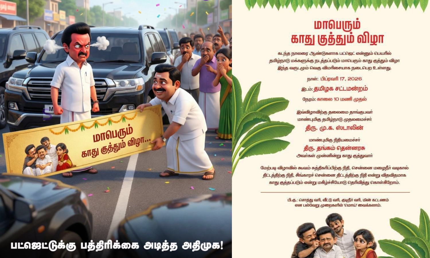 இன்று காலை நாங்கள் தமிழ்நாடு சட்டமன்றத்தில் மாபெரும் காதுகுத்து விழா அழைப்பிதழை அனைத்து ஊடக நண்பர்களுக்கும் அளித்திருக்கிறோம். அதை நீங்கள் பார்த்திருப்பீர்கள். எந்த அளவுக்கு இந்த அரசு மக்களுக்கு காது குத்தியது என்பதை நாட்டு மக்களும் அறியவேண்டும் என்பதற்காக இந்த அழைப்பிதழை உங்களிடம் கொடுத்திருக்கிறோம். நீங்கள் மக்களிடம் கொண்டுபோய்ச் சேர்ப்பது உங்கள் கடமை.